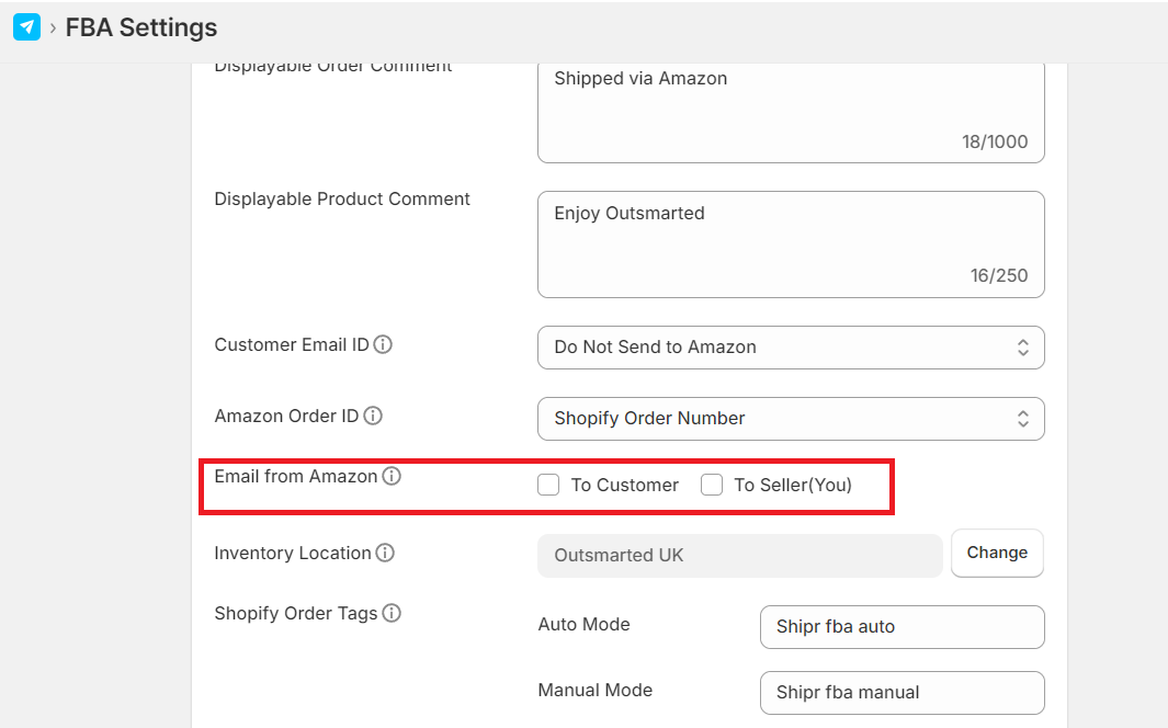 For each order that is shipped via FBA, the customer notifications can be sent via 2 methods:
