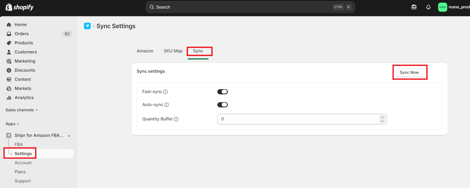 Only the matching SKUs will be synced. This ensures that the stock levels on Amazon and Shopify are the same and you don't have to manually update them each time when you restock on Amazon FBA.