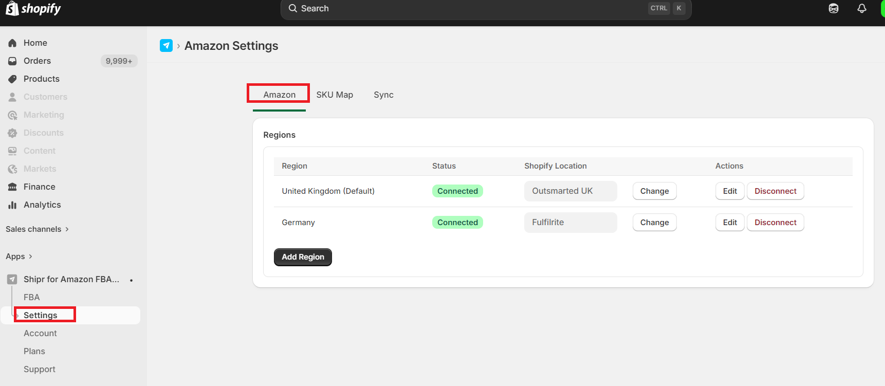 Also, do not map Amazon regions with the Shopify location 'Amazon Marketplace Web'. This will prevent the Shipr app from fulfilling via FBA and syncing inventory.