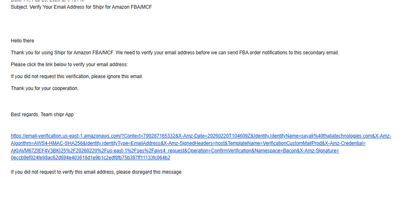 To ensure that your FBA notifications emails are delivered successfully and are not flagged as spam or spoofed, you need to verify your email address. Follow these steps to complete the verification:
